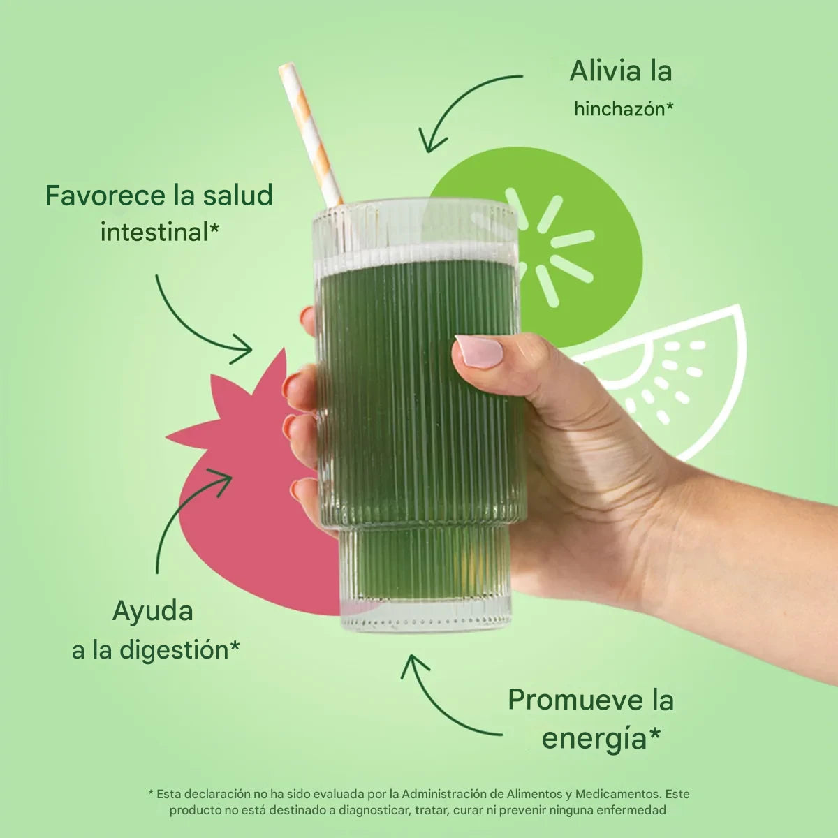 No es solo una mezcla verde cualquiera. Está formulado con más de 30 superingredientes naturales que trabajan en conjunto para desinflamar tu abdomen, mejorar tu digestión, aumentar tu energía y reforzar tu sistema inmune.