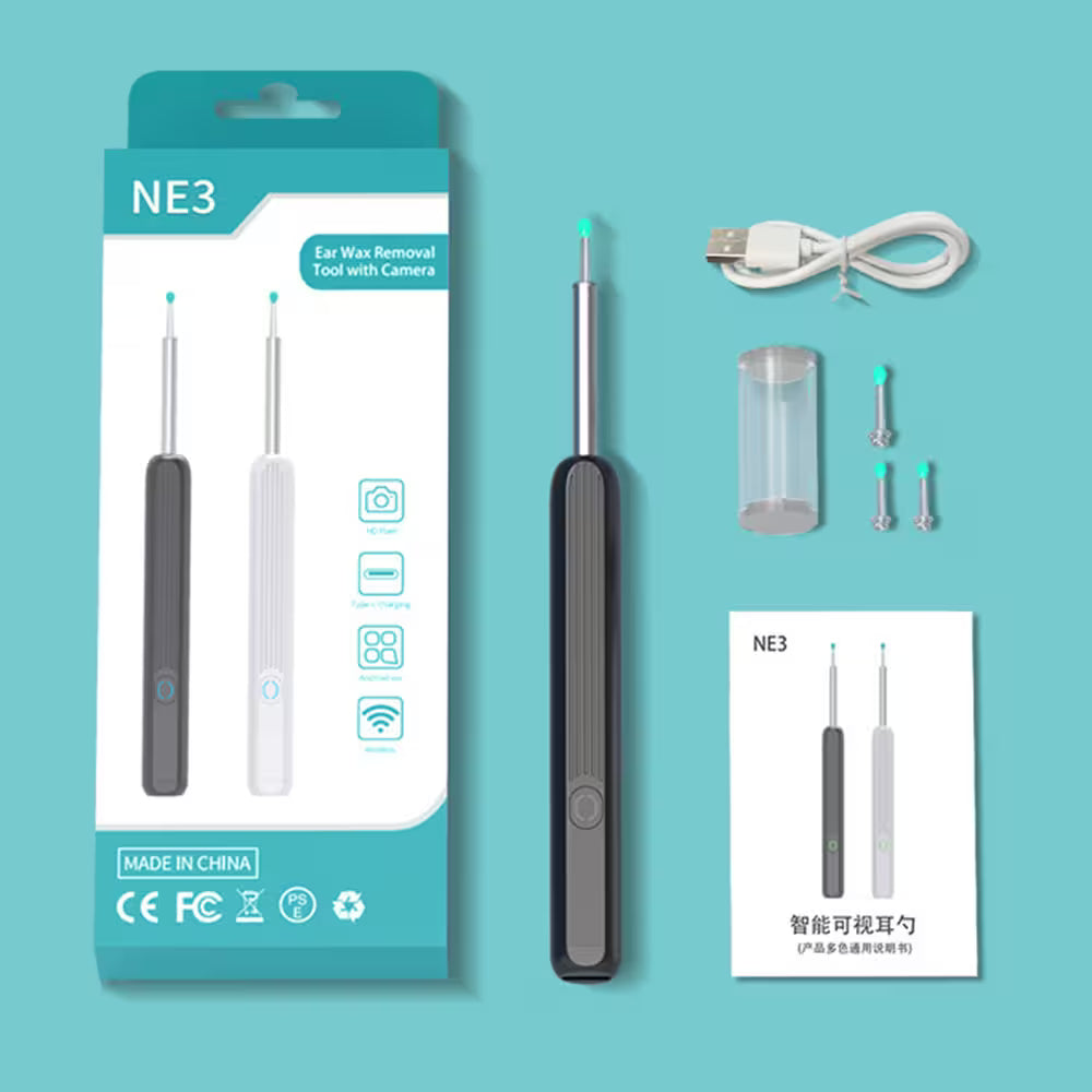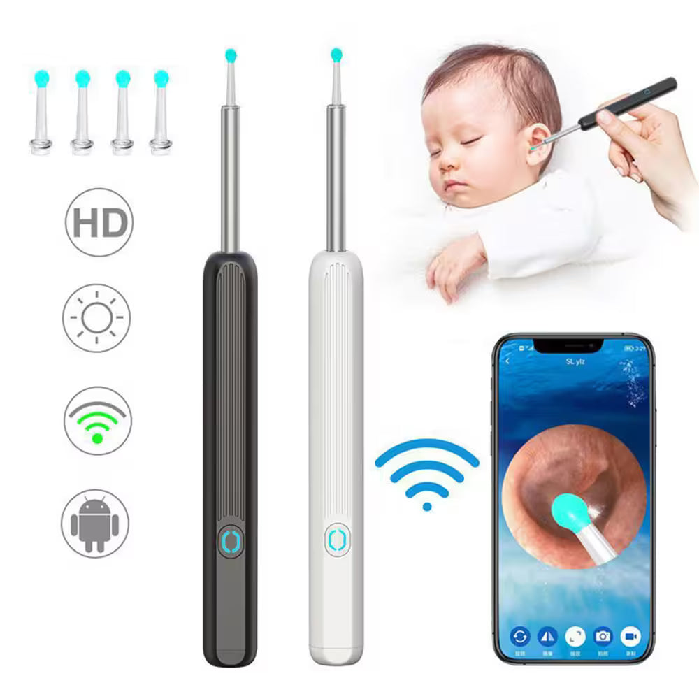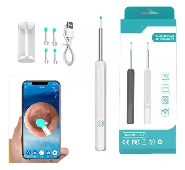 El dispositivo tiene una cámara pequeña y luz LED que permite ver el interior del oído en tiempo real a través de una app en tu teléfono (conexión WiFi). Esto ayuda a realizar una limpieza más precisa y segura.